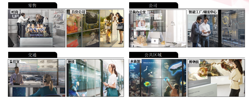 此外,OLED柔性拼接屏在平面的顯示領(lǐng)域同樣具備極大的優(yōu)勢,OLED前所未有的3.5mm拼縫,屏體的厚度僅僅為1mm,同時(shí)這也是讓當下幾大主流顯示產(chǎn)品都望塵莫及的。這使得在追求創(chuàng )意的商顯和展覽展示空間領(lǐng)域,柔性拼接屏的應用最為廣泛,比如:在垂直方向、橫行乃至一些弧度的顯示設計。同時(shí)亦可實(shí)現超輕薄拼接墻體設計等這些現有拼接技術(shù)難以實(shí)現的差異化應用。隨著(zhù)OLED技術(shù)日趨成熟,未來(lái)OLED有望實(shí)現與液晶媲美的拼縫。