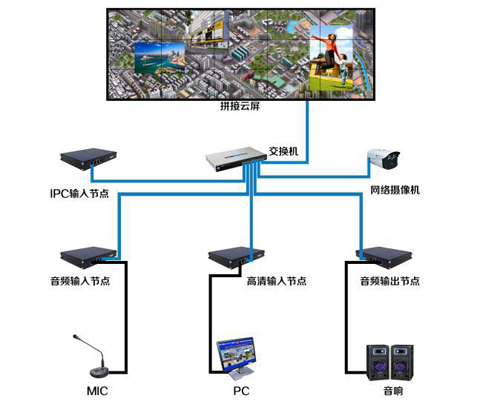 3、各種類(lèi)型信號可通過(guò)網(wǎng)線(xiàn)傳輸,可同時(shí)顯示在不同地點(diǎn)的大屏幕上,使用靈活并具有成本低的優(yōu)勢
