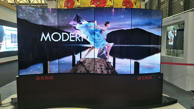 區別于傳統的平面顯示屏,這款65寸OLED雙面曲面拼接屏如藝術(shù)品一般,成為建筑空間的標志性物品,提高建筑空間的品味。