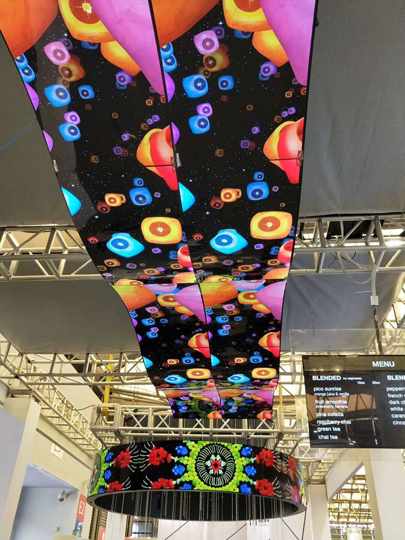 這款柔性開(kāi)放型曲面拼接屏可拓展和可彎曲的性能使它可以被設計成各式各樣的造型,通過(guò)橫向或縱向的使用模式,配置為凸曲面或凹曲線(xiàn)亦或是平面拼接,都能輕松融合到任何公共或私人空間里,尤其是輕奢酒店品牌以及各類(lèi)藝術(shù)場(chǎng)館、博物館等高端商業(yè)空間,帶來(lái)身臨其境的視覺(jué)體驗。