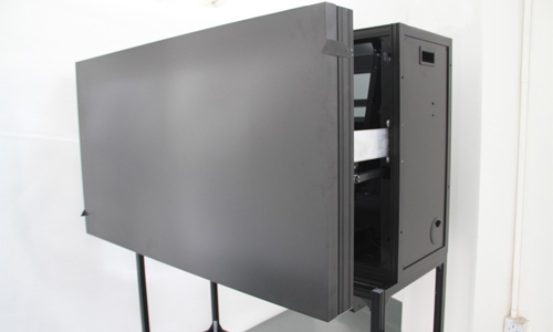 它還有一個(gè)令人叫絕的技術(shù),通過(guò)采用先進(jìn)的液壓傳動(dòng)技術(shù),可以快速高效實(shí)現前 維護,并支持三層以上堆疊。由于這款箱體不再需要后部維修通道(目前市面上主流的平板拼接,無(wú)論是LCD拼接還是PDP拼接,都需要一定的后部維修通道),單元整體厚度十分接近主流LCD、PDP等平板拼接(含支架及后部維修通道)的尺寸。通過(guò)采用這些最新的技術(shù)手段,傳統的DLP拼接單元完全實(shí)現了脫胎換骨,從而徹底顛覆了人們對傳統DLP拼接單元的認知。許多在現場(chǎng)觀(guān)察過(guò)實(shí)物的用戶(hù)一不留神,就會(huì )把它誤解成為大屏幕平板拼接產(chǎn)品。