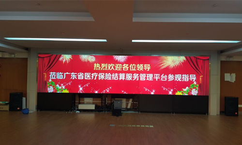 在賽普科技2X5的60寸超薄DLP拼接顯示系統上,廣東省醫療保險結算服務(wù)管理中心工作人員演示了“醫療保險結算服務(wù)”的一系列服務(wù)功能和流程。