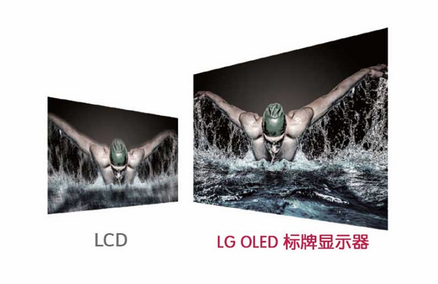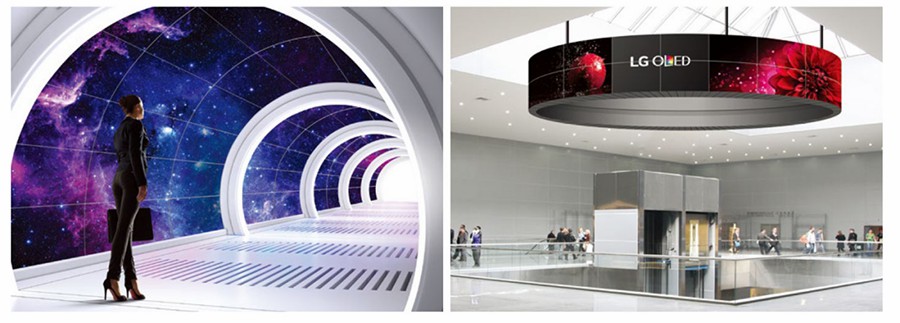 與傳統的大屏顯示產(chǎn)品相比,OLED無(wú)需背光燈,除了包含自身發(fā)光特性所帶來(lái)的輕薄優(yōu)勢,OLED顯示技術(shù)不但可以讓色彩呈現更加自然、色彩層次與對比度表現得更加鮮明,同時(shí)其柔性特性也讓顯示空間整體造型更加的靈活和創(chuàng )新。