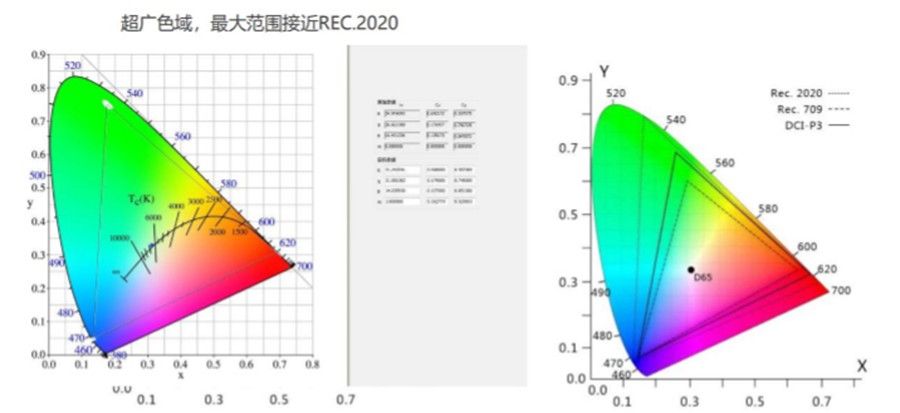 全面兼容Rec.2020標準( Rec.2020標準是國際電視廣播系列標準) ,色彩飽和度更高,圖像更絢麗。