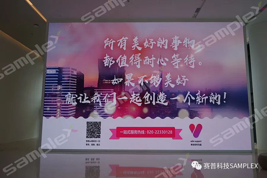 走入總部大廈前廳,迎面而來(lái)的是兩面立地而起的巨大無(wú)拼縫屏幕,與平時(shí)所見(jiàn)的顯示屏幕有著(zhù)極為不一樣的視覺(jué)體驗。屏幕由當前炙手可熱的COB小微間距拼接而成,采用像素級的點(diǎn)控技術(shù),從而實(shí)現對顯示屏像素單位的亮度、色彩的還原性和統一性的狀態(tài)管控。相對于普通的SMD 來(lái)說(shuō),這款COB不僅采用獨家的安全環(huán)保光學(xué)濾鏡技術(shù),有效緩解顆粒感,減少屏幕長(cháng)時(shí)間觀(guān)看產(chǎn)生的炫目和刺痛感,還可自動(dòng)過(guò)濾掉紫外線(xiàn)和有害波長(cháng)的藍光,使得眼睛不會(huì )受到傷害。同時(shí),在節能環(huán)保方面,也是采用了共陰極LED驅動(dòng)技術(shù),大大降低能效,使得屏幕表面溫度降低,更節能更環(huán)保,因此,COB小微間距無(wú)疑是當前室內高分顯示的最佳首選。屏幕循環(huán)回放著(zhù)整個(gè)廣州的風(fēng)貌和總部大廈從無(wú)到有的點(diǎn)滴,每一幀畫(huà)面,無(wú)不見(jiàn)證著(zhù)“廣州速度”、“琶洲速度”。與此同時(shí),整個(gè)大廈屏幕的建設,也見(jiàn)證著(zhù)“賽普速度”。100個(gè)小時(shí),從設計、布線(xiàn)、安裝、調試,一體成型,巨大屏幕由此誕生,這與唯品會(huì )“快而優(yōu)”的建設理念不謀而合。