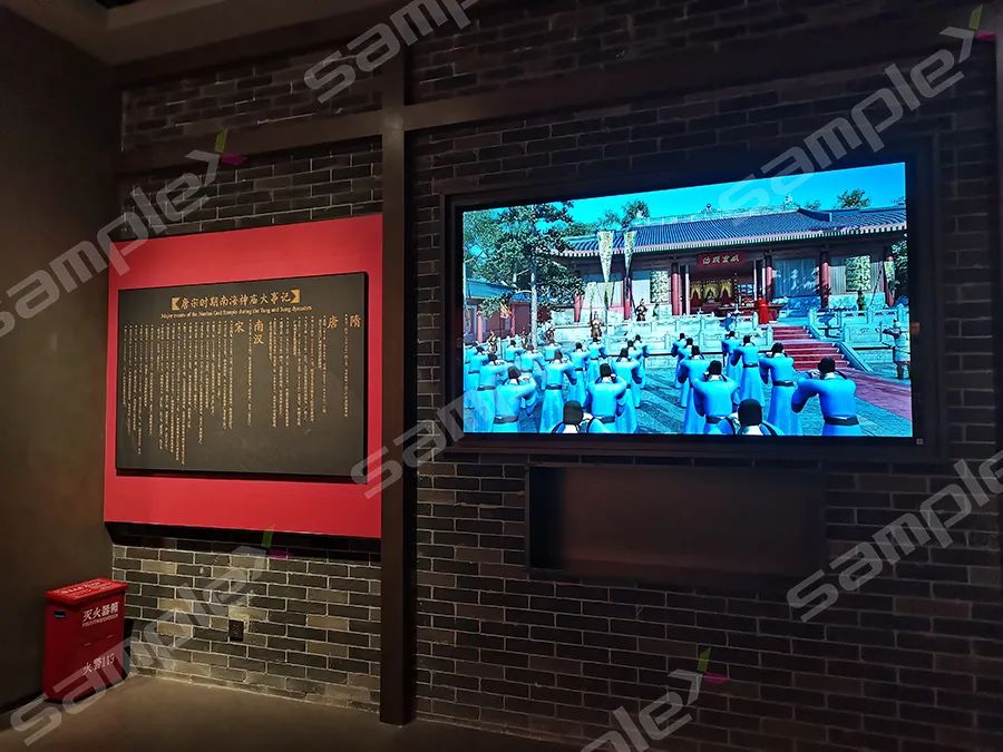走進(jìn)歷史的長(cháng)廊,迎面而來(lái)的是一面無(wú)縫拼接的COB小微間距顯示大屏,鮮紅的旗幟,與黨百年華誕的顯示畫(huà)面相當益彰,采用像素級的點(diǎn)控技術(shù),從而實(shí)現對顯示屏像素單位的亮度、色彩的還原性和統一性的狀態(tài)管控。相對于普通的SMD來(lái)說(shuō),這款COB小微間距顯示屏不僅采用獨家的安全環(huán)保光學(xué)濾鏡技術(shù),有效緩解顆粒感,減少屏幕長(cháng)時(shí)間觀(guān)看產(chǎn)生的炫目和刺痛感,還可以自動(dòng)過(guò)濾掉紫外線(xiàn)和有害波長(cháng)的藍光,使得眼睛不會(huì )受到傷害,同時(shí),在節能環(huán)保方面,也是采用了共陰極LED驅動(dòng)技術(shù),大大降低能效,使得屏幕表面溫度大幅度降低,相對于整天處于室內封閉環(huán)境的博物館來(lái)說(shuō),無(wú)疑是當前高分顯示的不二之選。其中,絢麗多彩的畫(huà)面展示與視頻講解讓參觀(guān)者身臨其境,充分感知歷史的溫度與精神。