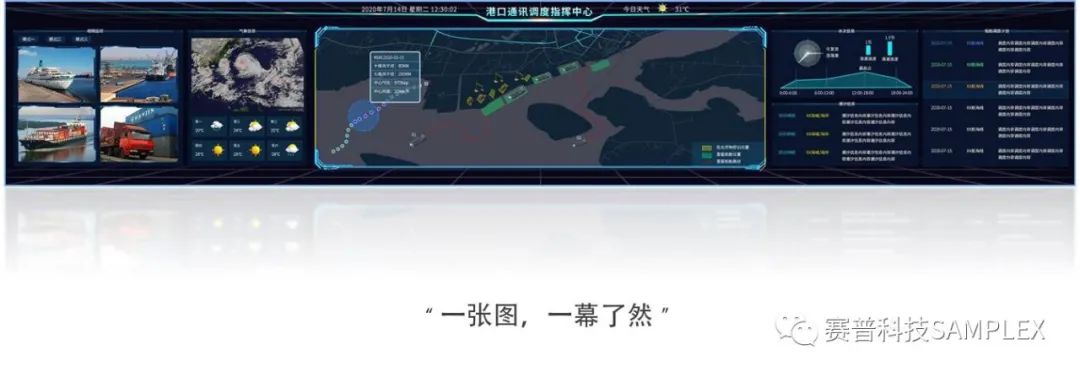 賽普科技可視化大數據以“全”、“易”、“自由DIY編輯”為宗旨,面對整個(gè)港務(wù)局海量的業(yè)務(wù)信息,采用全組態(tài)方式“零代碼”自由構建應用場(chǎng)景,將數據進(jìn)行統一分類(lèi)呈現,通過(guò)VR全景、3D、2D、視頻、GIS等多種展示方式,實(shí)現“一張圖一平臺”、“所見(jiàn)即所得”的精細化管控 。賽普科技智慧調度指揮中心是以集大屏、光纖分布式拼控平臺、光纖KVM坐席、可視化大數據呈現軟件、中控于一體的運維集控中心等形成協(xié)同效應并提升港口管理運營(yíng)智能化的核心方案。以結合5G高速傳輸、8K超高清、AI智能化等信息技術(shù)覆蓋數據接入、存儲、處理、分析以及大數據共享與應用的全流程。包括港口各港區碼頭、船舶引航、散雜貨業(yè)務(wù)、集裝箱業(yè)務(wù)、鐵路運輸、海關(guān)檢疫、應急人員、物資情況等在內的海量數據通過(guò)接入大數據中心后,關(guān)聯(lián)顯示不同應急事件的處置流程,完成數據的存儲、處理、計算、分析、挖掘等步驟,再經(jīng)由服務(wù)總線(xiàn)成為資源共享、實(shí)時(shí)更新發(fā)布,為指揮決策提供“有理有據”、“直觀(guān)”、“易了解”的決策信息,直接驅動(dòng)港口的業(yè)務(wù)應用創(chuàng )新與科學(xué)決策管理,為港口走向智能化、信息化提供強有力的支撐。
