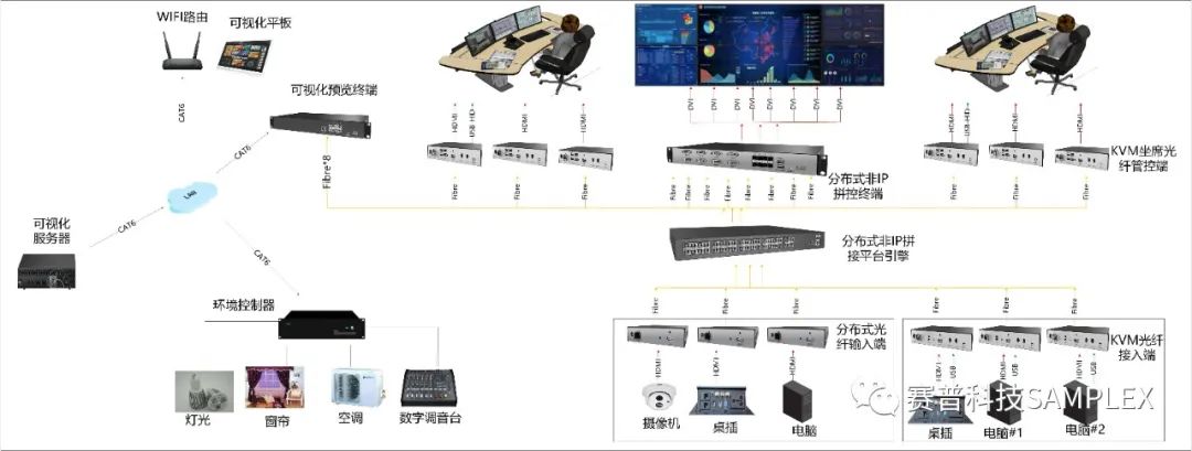 賽普科技新一代光纖KVM坐席協(xié)作管理平臺是一款集大屏、光纖分布式拼控平臺(非IP架構)、光纖KVM坐席、可視化預覽終端、中控于一體的綜合管理平臺,為關(guān)鍵業(yè)務(wù)提供實(shí)時(shí)且高效的統一調度、是控制室走向“智能化、信息化”的強有力支撐。